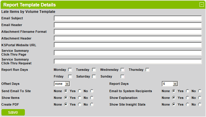 Late Items by Volume - both parent and child templates are stored in the LateItemsByVolumeTemplate table.