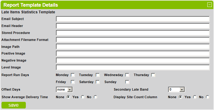 Late Item Statistics - both parent and child templates are stored in the LateItemsStatisticsTemplate table.