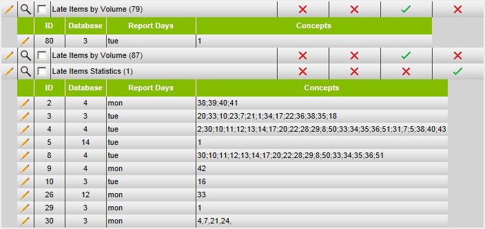 Late Items by Volume - both parent and child templates are stored in the LateItemsByVolumeTemplate table.